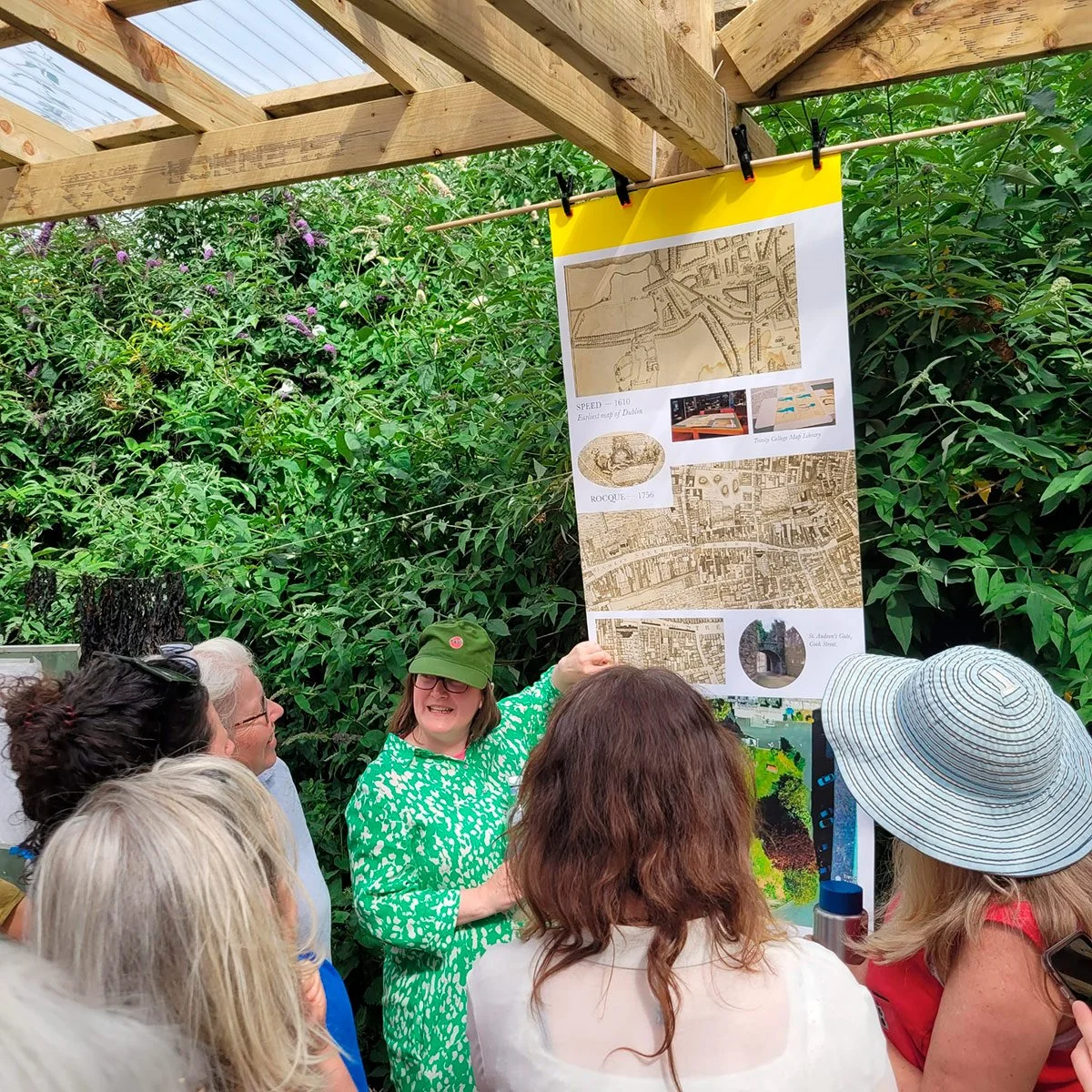 Creative Research Pop-up, NCAD FIELD, 2024. Creative Research Pop-up event staged in the FIELD, outdoor learning lab, NCAD, Dublin. Research centred around Landscape Structure histories/transitions for the future and Public/Private space in the context of limited access to green spaces in Dublin City Centre.